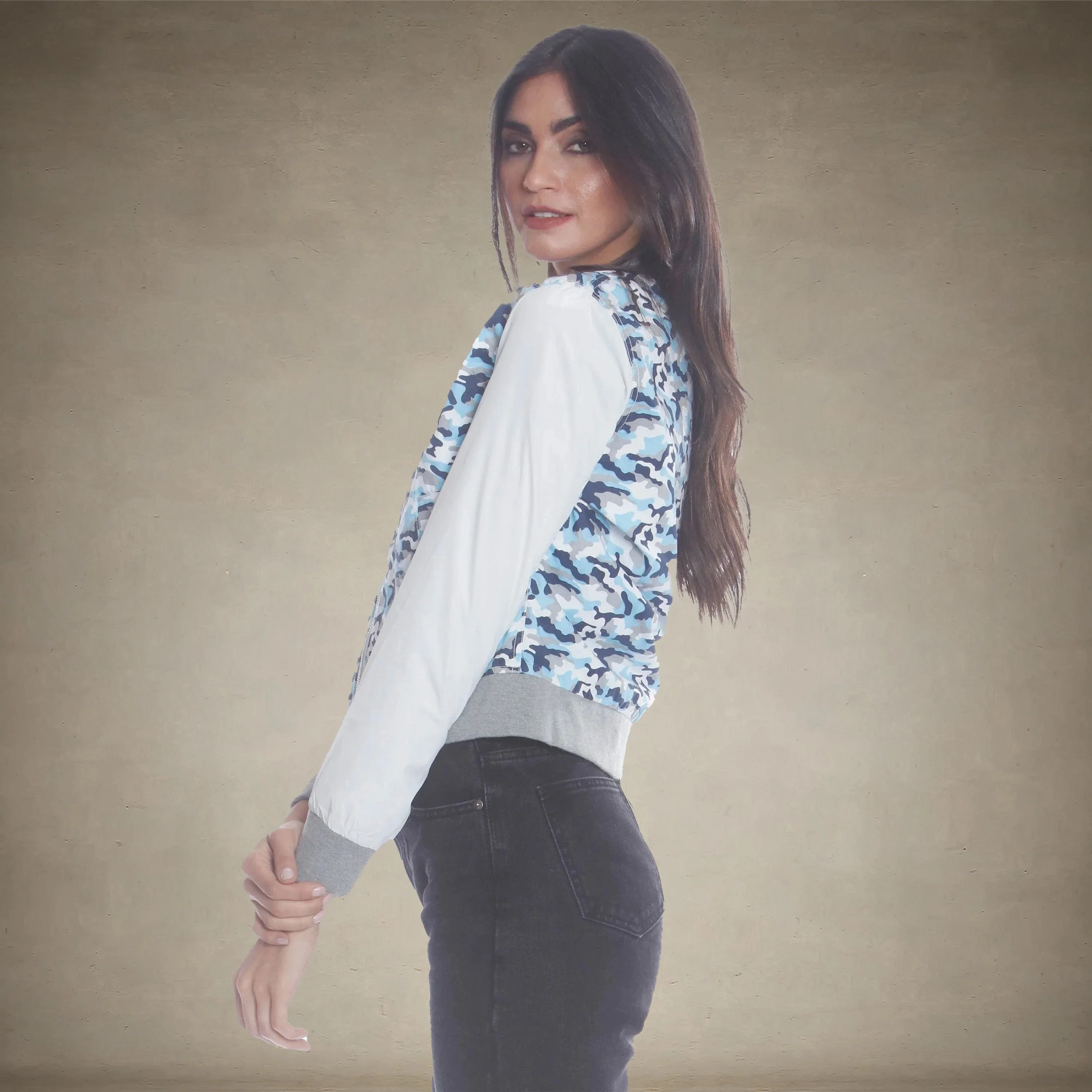 Women's Camouflage Baseball Jacket with Nylon Sleeves - FINAL SALE